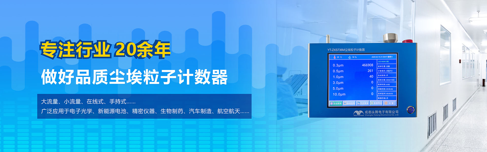 成都永騰電子有限公司位于成都市國(guó)家經(jīng)濟(jì)技術(shù)開(kāi)發(fā)區(qū),是一家專(zhuān)業(yè)從事環(huán)境空氣監(jiān)測(cè)儀器研發(fā)、生產(chǎn)、銷(xiāo)售于一體的高科技企業(yè)。產(chǎn)品涵蓋空氣檢測(cè)儀器、潔凈間在線(xiàn)塵埃粒子計(jì)數(shù)器監(jiān)測(cè)系統(tǒng)、大氣顆粒物監(jiān)測(cè)微站系統(tǒng)、電化學(xué)分析儀器、實(shí)驗(yàn)室設(shè)備等產(chǎn)品。